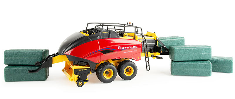 New Holland Big Baler 340 Plus with Hay Bales Features: • Made of Diecast Metal • Baler has a tandem axle • Adjustable pickup head • Movable chute • Free rolling tires • Includes six square bales This is a genuine Ertl product.