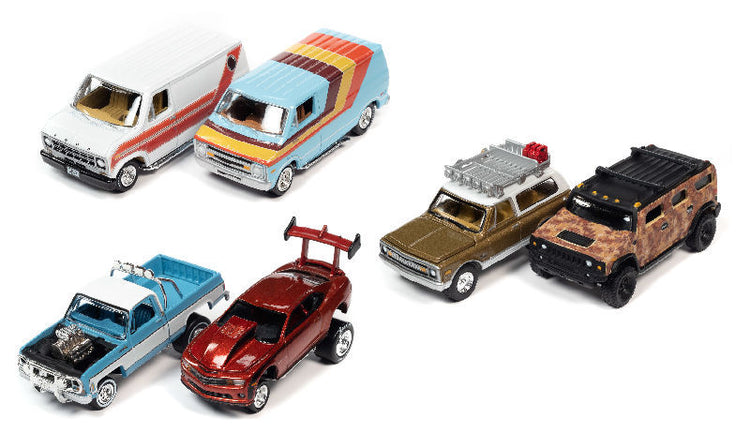 Twin Pack 2021 Release 4A - 3-Piece SET Diecast metal body and chassis with rubber tires This SET features 3 twin packs two cars on one blister card. Boogie Vans Pack Includes:• 1976 Dodge Street Van in Light Blue with Red Orange and Yellow St This is a genuine Johnny Lightning product.