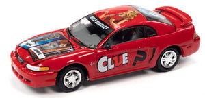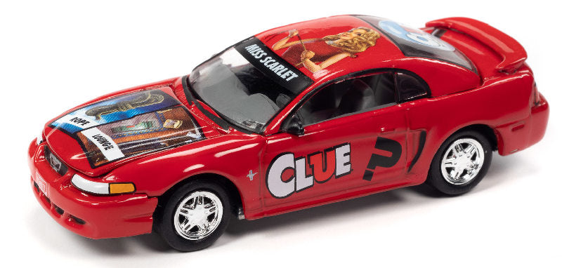Clue - 2000 Ford Mustang in Red - Miss Scarlet Diecast metal body and chassis with rubber tires This is a genuine Johnny Lightning product.