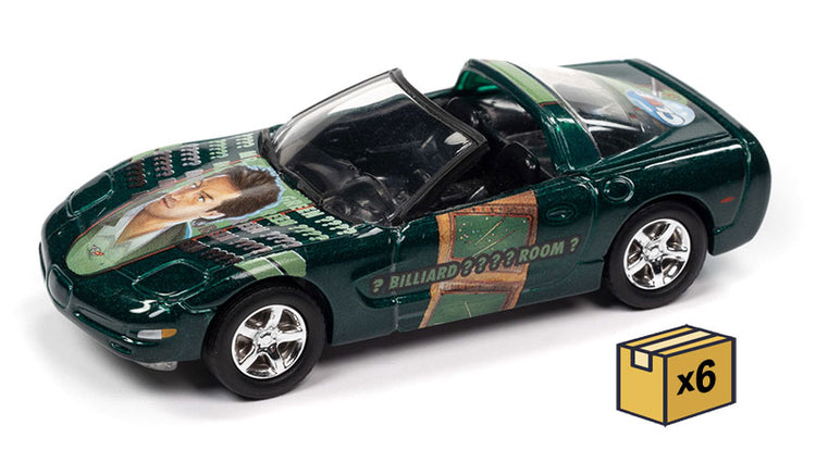 Modern Clue - 2000 Chevrolet Corvette Z06 in Dark Green- Mr Green Billiard Room with Revolver Graphics with Poker Chip - 6 pieces in a Non-Returnable Factory-Sealed CASE Features include: • Diecast metal body and chassis • Accurate pa This is a genuine Johnny Lightning product.