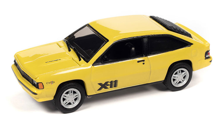 1981 Chevrolet Citation X-11 in Bright Yellow Diecast metal body and chassis with rubber tires This is a genuine Johnny Lightning product.
