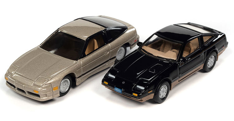 Import Heat/Japan Classics Twin Pack Twin pack includes:• 1990 Nissan 240SX in Champagne Pearl• 1985 Nissan Fairlady 300ZX in Thunder Black Body with Gold Lower Features include:• Diecast metal body and chassis• Rubber tires This is a genuine Johnny Lightning product.