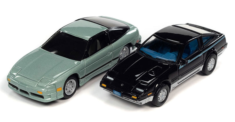 Import Heat/Japan Classics Pack Twin Pack Includes the following: • 1990 Nissan 240SX in Silver Green Pearl • 1985 Nissan Fairlady 300ZX in Black Blue Body with Silver Lower This is a genuine Johnny Lightning product.