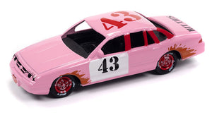 1997 Ford Crown Victoria in Cotton Candy Pink with Derby Graphics - Demolition Derby Diecast metal body and chassis This is a genuine Johnny Lightning product.