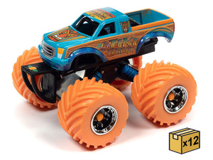 Tiki Terror Monster Truck in Orange Blue and Green with Orange Tires - 12 pieces in a Non-Returnable Factory-Sealed CASE Features include: • Detachable metal body • Ultra-flex suspension Now is your chance to hunt for the WHITE LIG This is a genuine Johnny Lightning product.