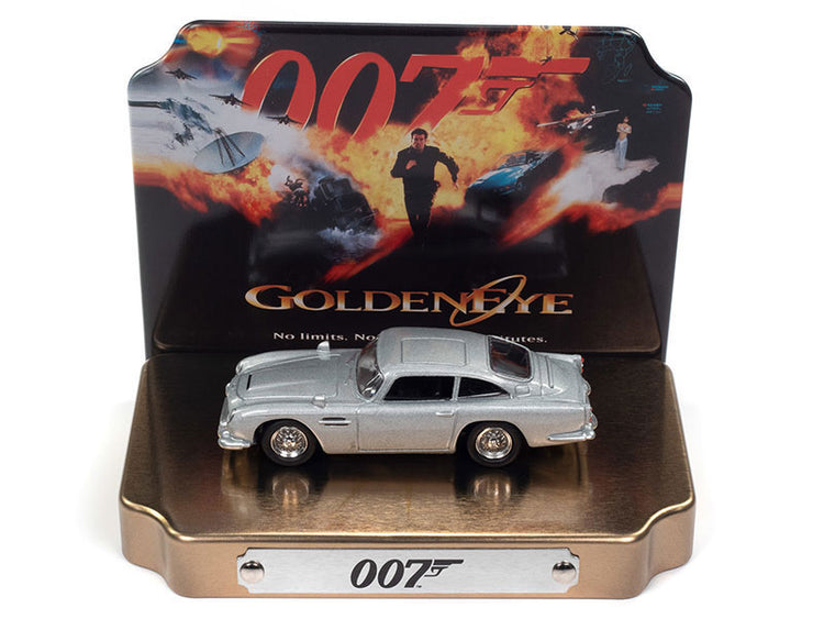 James Bond - Golden Eye - Silver Screen Dioramas - Aston Martin DB5 in Silver Birch with Collectible Tin Display Features include: • Diecast metal body and chassis • Authentic film replica This is a genuine Johnny Lightning product.
