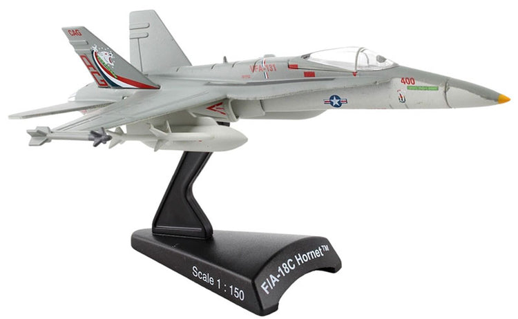 The Daron PS5338-3 F/A-18C Hornet VFA-131 Wildcats Diecast in 1/150 scale is a detailed replica of the Navy's multirole fighter jet in VFA-131 squadron livery. Featuring authentic markings, a sculpted body, and a display stand, this model honors the Wildcats' role in fleet defense.