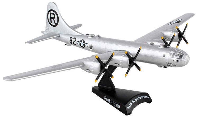 The Daron PS5388 B-29 Superfortress USAAF Diecast in 1/200 scale is a historically rich replica of the "Enola Gay," the aircraft that dropped the first atomic bomb over Hiroshima. Featuring four engines, authentic WWII markings, and a display stand, this model honors the B-29's role in ending the war.