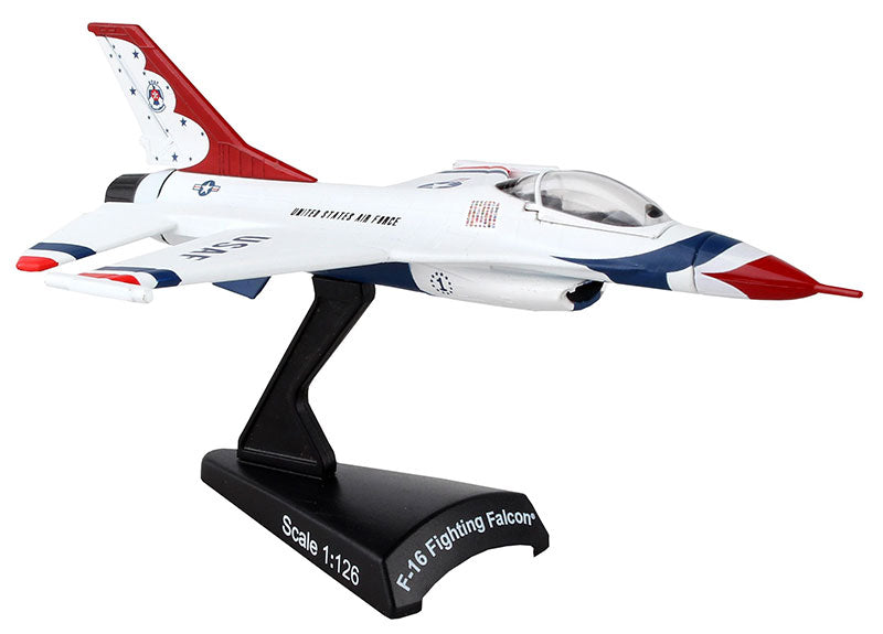 Made from diecast metal and plastic, the Thunderbirds F-16 measures 4.875" long with a 3.125" wingspan. Recommended for ages 14+, it's a centerpiece for airshow fans.
