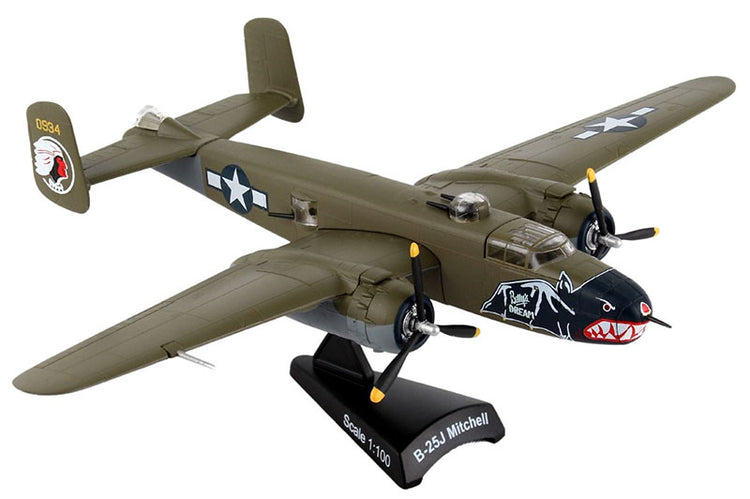 The Daron PS5403-3 B-25J Mitchell "Betty's Dream" Diecast in 1/100 scale is a vibrant replica of the twin-engine bomber flown in the Pacific Theater. Featuring authentic nose art, rotating propellers, and a display stand, this model honors the B-25's versatility and combat legacy.