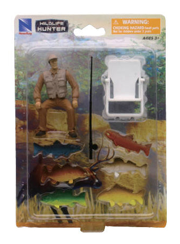 Fly-Fishing Playset Playset includes:• Fisherman Figure• Fly-Fishing Reel• Camp Chair• Six Fish Made of durable plastic This is a genuine New Ray product.