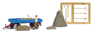 Busch 79851 HO Scale Hay Harvest - Action Set -- Low-Side Farm Trailer, 3 Hay Stacks, Figure, Farm Tools This is a genuine Busch product.
