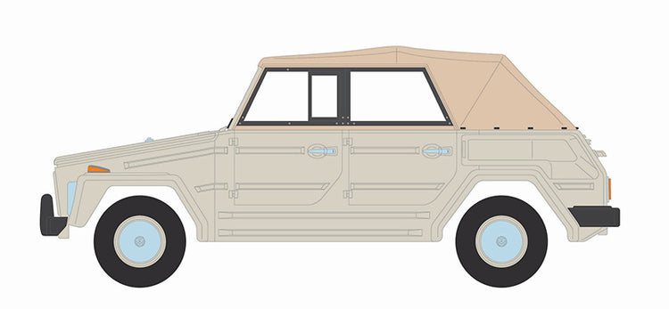 1973 Volkswagen Type 181 The Thing in Beige with Tan Soft Top Club Vee-Dub Series 20 Features and Details: • Authentic Livery • Real Rubber Tires • Chrome Accents • True-To-Scale Detail • Limited Edition Photo is pre-production This is a genuine Greenlight product.