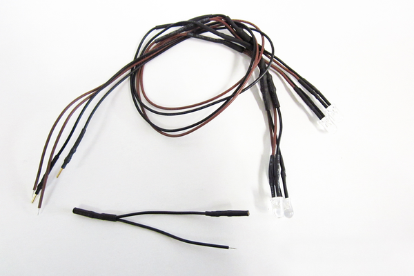 This set features warm white and red LEDs with integrated resistors, ready for direct installation. It supports both analog and digital systems and fits seamlessly into the rear lighting ports of supported models.