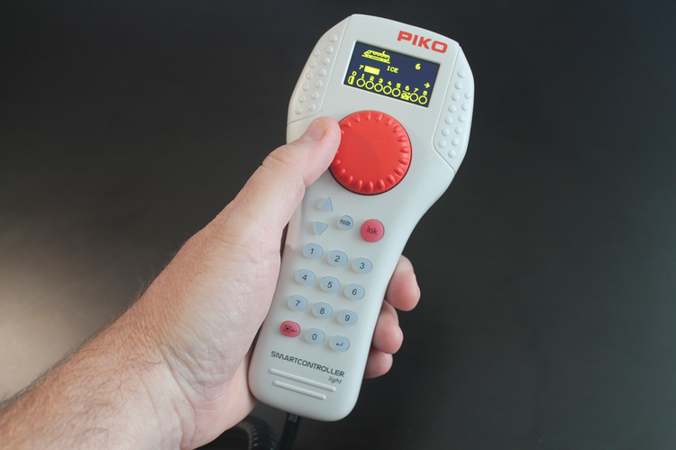 The Piko 55016 SmartController Light connects to the SmartBox Light via tethered cable.