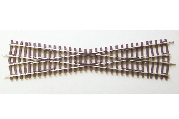 The Piko 55240 HO Scale Crossing K15 15°/239 mm is a track crossing element with a 15° angle and straight track length of 239 mm (23.9 cm / 9.41"). It allows trains to cross tracks at shallow angles, ideal for complex yard and station layouts.