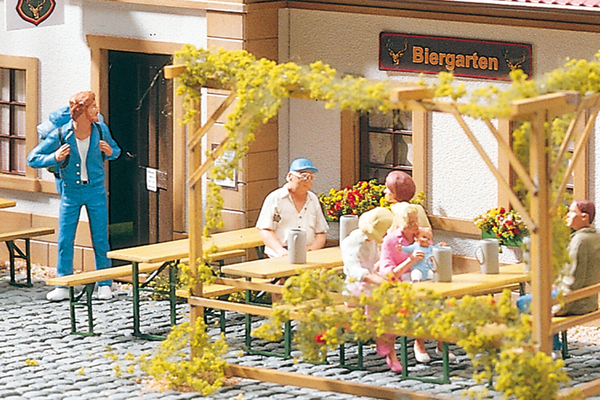 This set integrates with structures such as snack bars (#62021) and beer gardens (#62022). Designed for both indoor and outdoor use, it adds realism to town and village layouts.