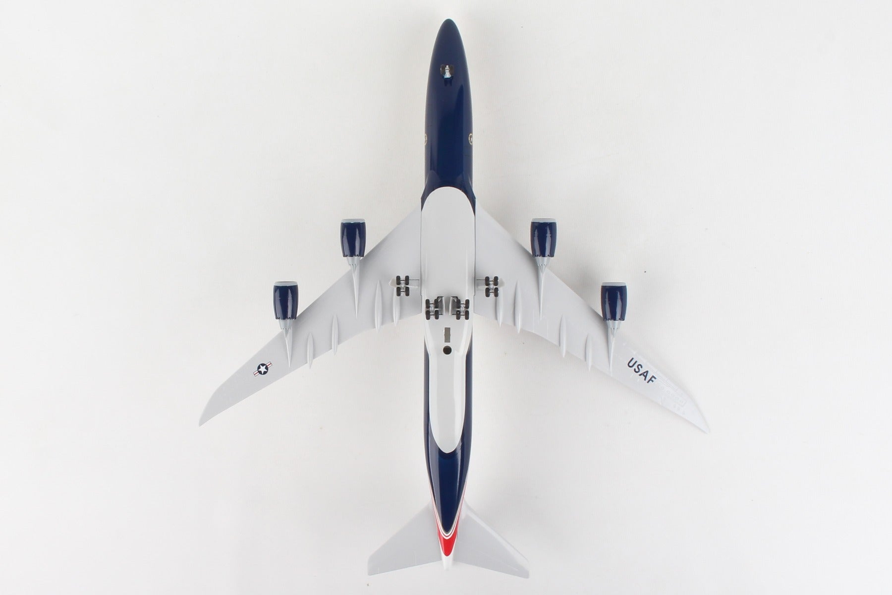 Skymarks SKR1076 Skymarks Air Force One 747-8I 1/200 W/Gear (Vc-25B) #30000. This model features solid injection molded plastic construction with highly detailed graphics. All models assemble in minutes and include a display stand. Model is approximately 15 inches long with 13 ½ inch wingspan. This is a genuine Skymarks product.