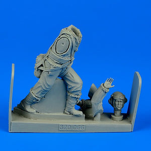 Aerobonus 320066 1/32 WWII RAF Fighter Pilot (Standing as pushing). This is a model kit. Assembly, painting, and detailing required. This is a genuine Aerobonus product.