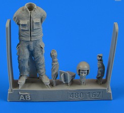 Aerobonus 480167 1/48 Warshaw Pact Aircraft Mechanic #3 (w/Wheel Chock) . This is a model kit. Assembly, painting, and detailing required. This is a genuine Aerobonus product.