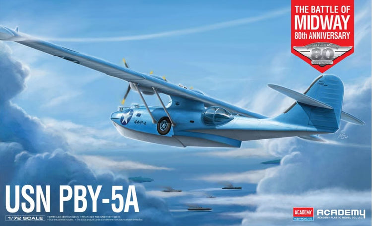 Academy 12573 1/72 PBY5A USN Aircraft Battle of Midway 80th Anniversary. This is a model kit. Assembly, painting, and detailing required. This is a genuine Academy product.