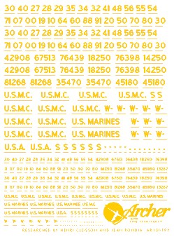 This Archer Fine Transfers 35019Y 1/35 US Vehicle Registration Codes (Yellow Non-Stencil) is brand new and ships in the manufacturer's original packaging. This is a genuine Archer Fine Transfers product.