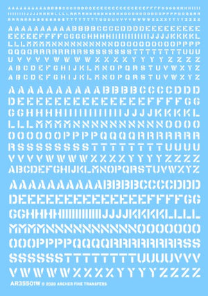 Archer Fine Transfers 35501W Waterslide Decal: 1/35 Generic Stencil Style Lettering WWII Allied Vehicles (White)