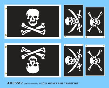 This Archer Fine Transfers 35512 Fabric Texture Applique: Pirate Flags (3) (Various Scales) is brand new and ships in the manufacturer's original packaging. This is a genuine Archer Fine Transfers product.
