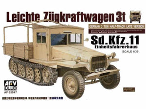 AFV Club 35047 1/35 SdKfz 11 3-Ton Halftrack Late Type w/Wood Cab. This is a model kit. Assembly, painting, and detailing required. This is a genuine AFV Club product.