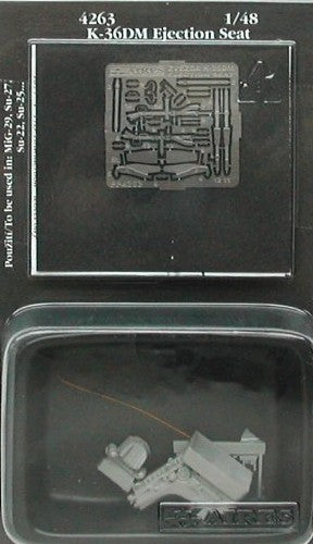 Aires 4263 1/48 K36DM Ejection Seat For MiG29, Su27/22/25. This is a model kit. Assembly, painting, and detailing required. This is a genuine Aires product.