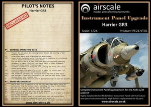 Airscale 2431 1/24 Hawker Harrier GR1/3 Instrument Panel (Photo-Etch & Decal) . This is a brand new item in original manufacturer packaging. This is a genuine Airscale product.