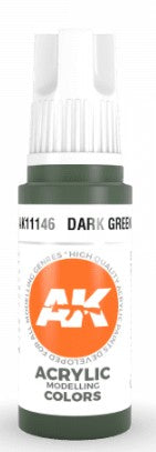 AK Interactive 11146 Dark Green 3G Acrylic Paint 17ml Bottle. This is a brand new item in original manufacturer packaging. This is a genuine AK Interactive product.