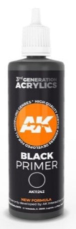 AK Interactive 11242 Black 3G Acrylic Primer 100ml Bottle. This is a brand new item in original manufacturer packaging. This is a genuine AK Interactive product.