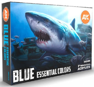 AK Interactive 11618 Blue Essential 3G Acrylic Paint Set (6 Colors) 17ml Bottles. This is a brand new item in original manufacturer packaging. This is a genuine AK Interactive product.