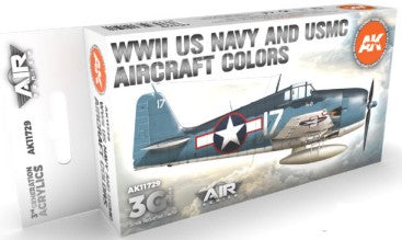 AK Interactive 11729 Air Series: WWII USN & USMC Aircraft 3G Acrylic Paint Set (6 Colors) 17ml Bottles. This is a brand new item in original manufacturer packaging. This is a genuine AK Interactive product.
