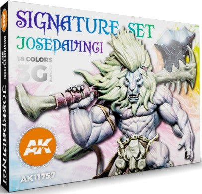 AK Interactive 11757 Jose Davinci Signature 3G Acrylic Paint Set (18 Colors) 17ml Bottles. This is a brand new item in original manufacturer packaging. This is a genuine AK Interactive product.