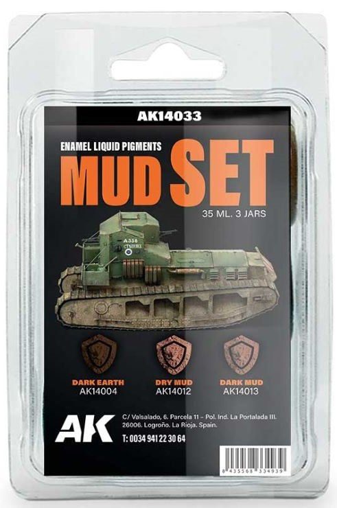 AK Interactive 14033 Mud Liquid Pigment Enamel Set (14004, 14012, 14013). This is a brand new item in original manufacturer packaging. This is a genuine AK Interactive product.