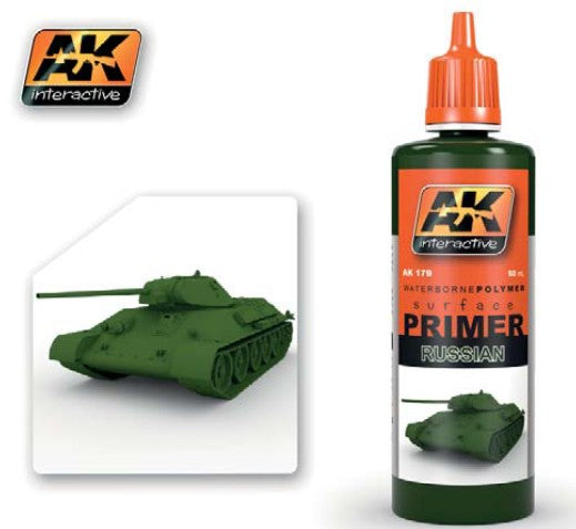 AK Interactive 179 Russian Green Acrylic Primer 60ml Bottle . This is a brand new item in original manufacturer packaging. This is a genuine AK Interactive product.