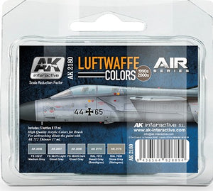 AK Interactive 2180 Air Series: Luftwaffe 1990s-2000s Acrylic Paint Set (5 Colors) 17ml Bottles . This is a brand new item in original manufacturer packaging. This is a genuine AK Interactive product.
