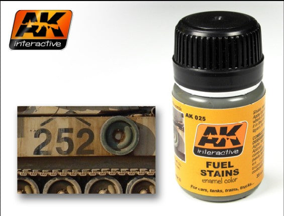 AK Interactive 25 Fuel Stains Enamel Paint 35ml Bottle. This is a brand new item in original manufacturer packaging. This is a genuine AK Interactive product.