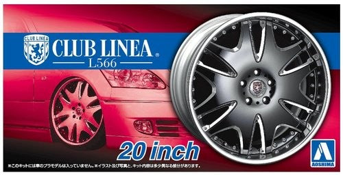 Aoshima 53850 1/24 Club Linea L566 20" Tire & Wheel Set (4). This is a model kit. Assembly, painting, and detailing required. This is a genuine Aoshima product.