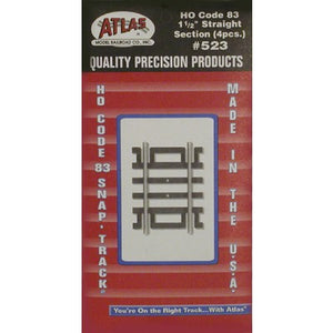 Atlas 523 HO Code 83 1.5" Straight Track (4). This is a brand new item in original manufacturer packaging. This is a genuine Atlas product.