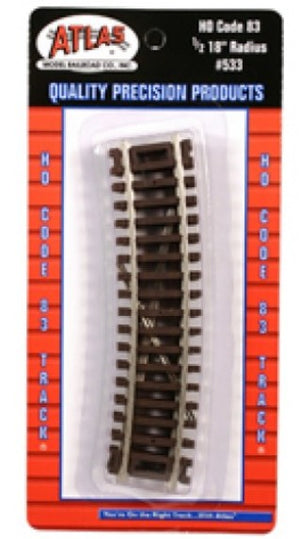 Atlas 533 HO Code 83 1/2-18" Radius Snap Track (4). This is a brand new item in original manufacturer packaging. This is a genuine Atlas product.