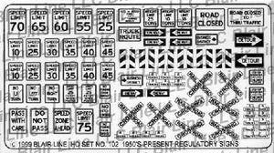 Blair Line 102 HO Regulatory Street Signs #1. This is a brand new item in original manufacturer packaging. Blair Line sign sets feature high quality printing and must be adhered with glue. Blair line building and billboard kits feature laser-cut wood parts. Assembly, painting, and detailing required. This is a genuine Blair Line product.