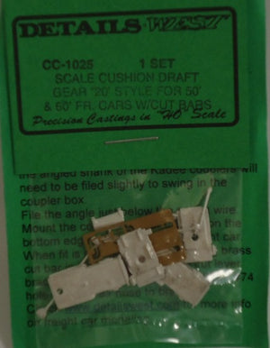 Details West 1025 HO Freight Car 50'/60' Cushion Draft Gear 20 Style w/Cut Bars & Photo-Etch (1 Set). This is a brand new item in original manufacturer packaging. This is a genuine Details West product.