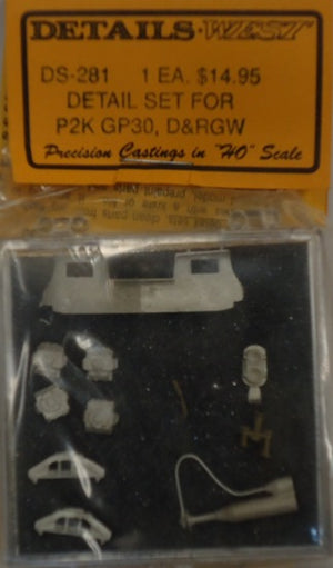 Details West 281 HO P2K, GP30, D&RGW Detail Set. This is a brand new item in original manufacturer packaging. This is a genuine Details West product.