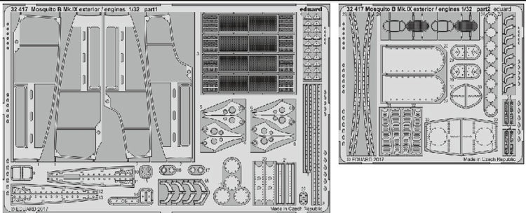 Eduard 32417 1/32 Aircraft- Mosquito B Mk IX Exterior & Engines for HKM . This is a brand new item in original manufacturer packaging. This is a genuine Eduard product.