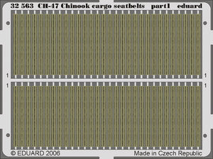 Eduard 32563 1/35 Aircraft- CH47A Chinook Cargo Seatbelts for TSM (Painted). This is a brand new item in original manufacturer packaging. This is a genuine Eduard product.