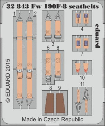 This Eduard 32843 1/32 Aircraft- Fw190F8 Seatbelts for RVL (Painted) is brand new and ships in the manufacturer's original packaging. This is a genuine Eduard product.