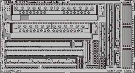 Eduard 36063 1/35 Armor- M1127 Mounted Rack & Belts for TSM . This is a brand new item in original manufacturer packaging. This is a genuine Eduard product.